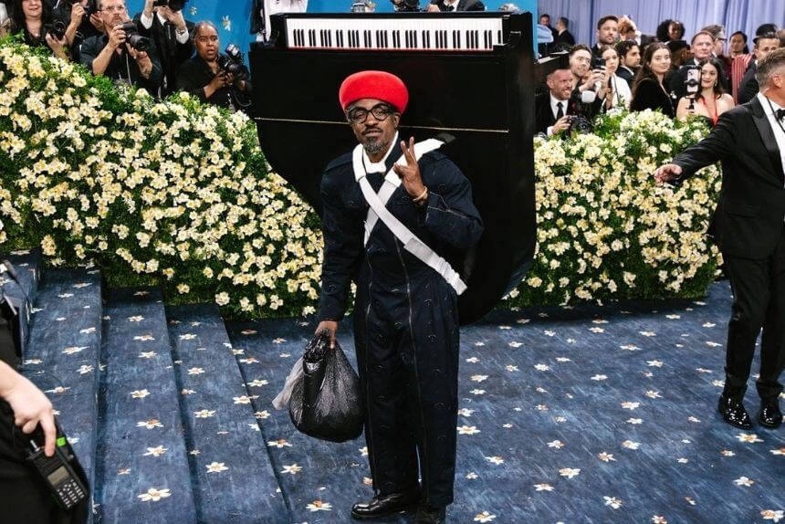 In one of the most delightfully absurd red-carpet moments of 2025, André 3000 showed up to the Met Gala wearing a Burberry jumpsuit and carrying a baby grand piano on his back. Equal parts surreal, self-aware, and theatrical.