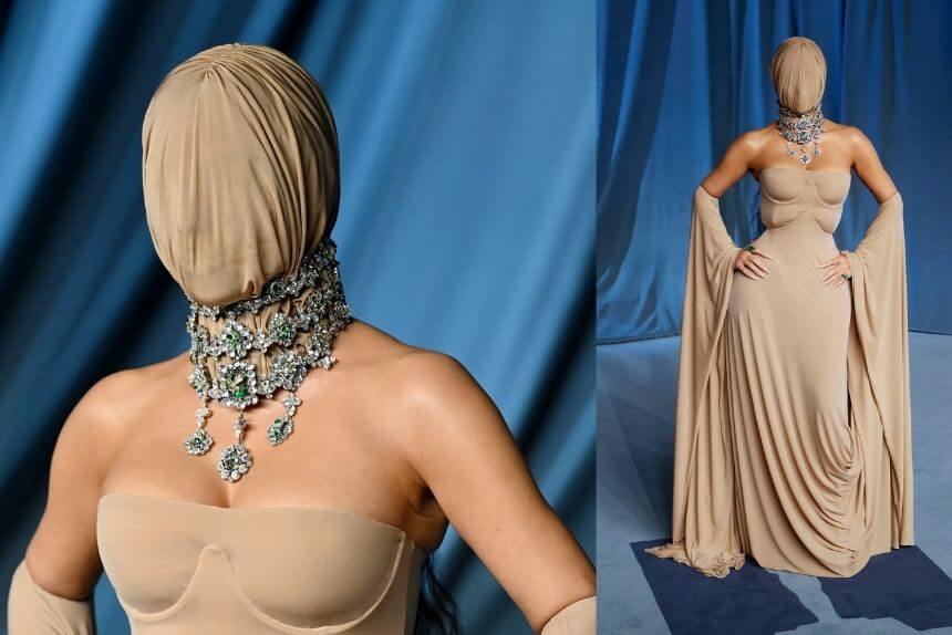 Kim Kardashian’s 2025 appearance at the Academy Museum Gala redefined “faceless fashion.” In true Maison Margiela style, she wore a nude gown and a sheer veil covering her entire face — anonymity as the ultimate luxury. And it’s easy! This is your Halloween shortcut to mystery: a costume that hides everything yet reveals an aesthetic genius underneath.