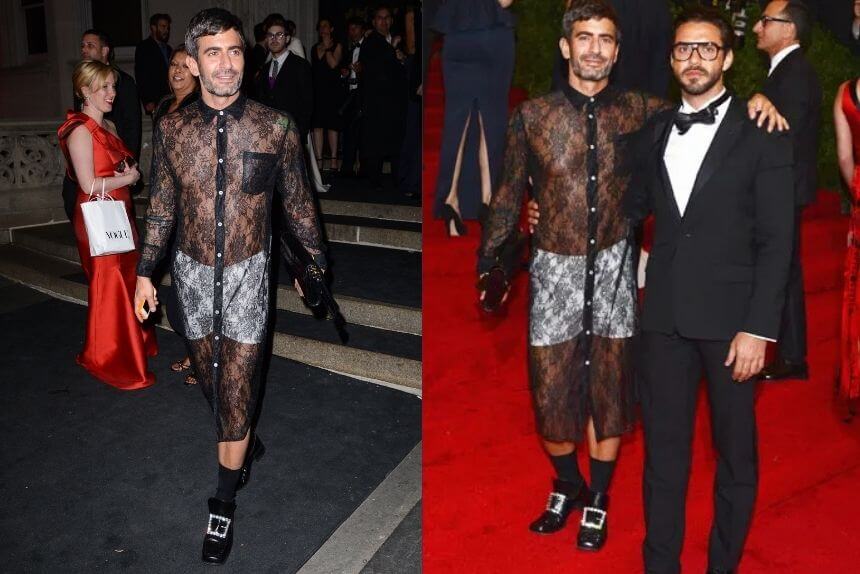 When Marc Jacobs walked into the Met in a full black lace dress, he blurred the line between menswear and gothic lingerie — and fashion history applauded. It’s gender-fluid, provocative, and so unapologetically “I don’t care what you think” that it belongs in the Halloween hall of fame.