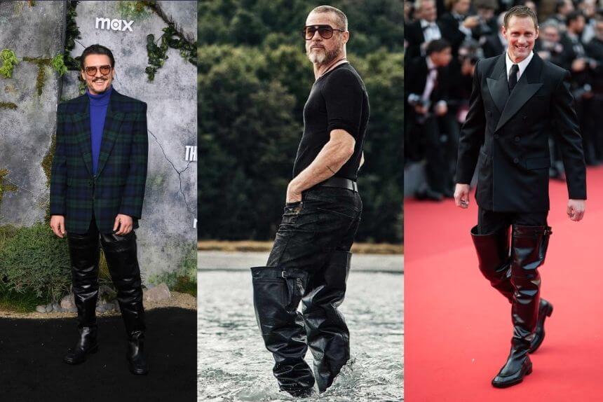 It all began with Pedro Pascal, who broke the internet in Saint Laurent’s jet-black waders on the 2025 red carpet, proving that confidence is the only thing higher than those heels. Soon after, Brad Pitt followed in, and then came Alexander Skarsgård, strutting into the Cannes Film Festival in those killer boots. They really do look like they belong to a serial killer. Try wearing a yellow raincoat instead of a fancy jacket. You can walk into Halloween looking like a stylish psyco.